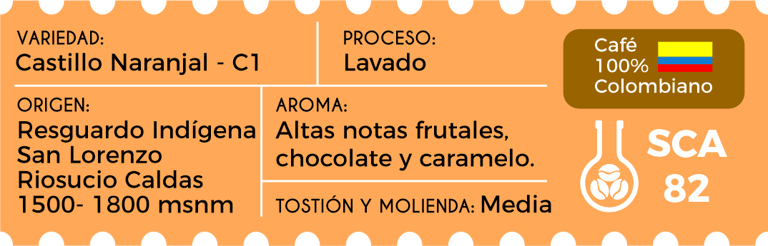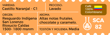 Café de especialidad con puntaje SCA 82. Notas naturales a chocolate, caramelo y frutas, procesado bajo los más altos estándares de origen en San Lorenzo, Caldas.